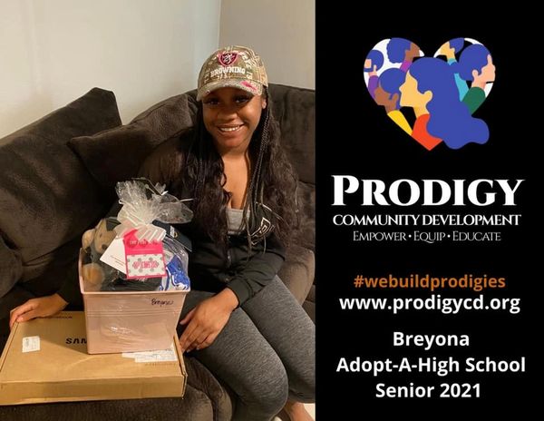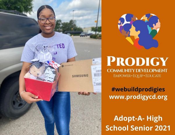 Prodigy Community Development Adopt High School Seniors from low income ; single parent homes. They received a care package that included gift cards from their wish list and their favorite goodies. Some of our community partners donated gift cards to go in their care packages.